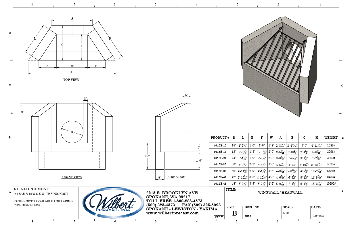 Dimensions: 4'-8" X 4'-8" X 2'-0" Weight: 1707 lbs.