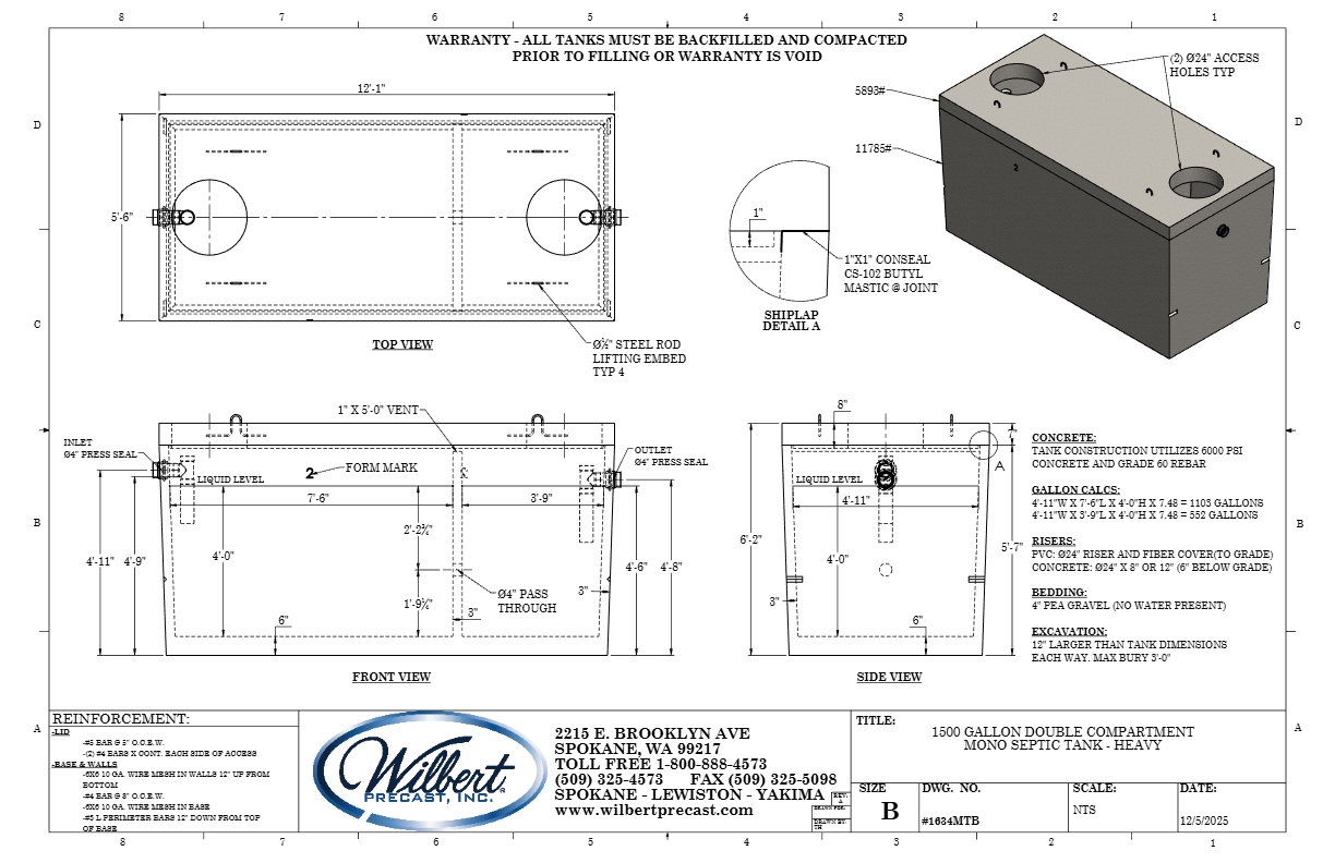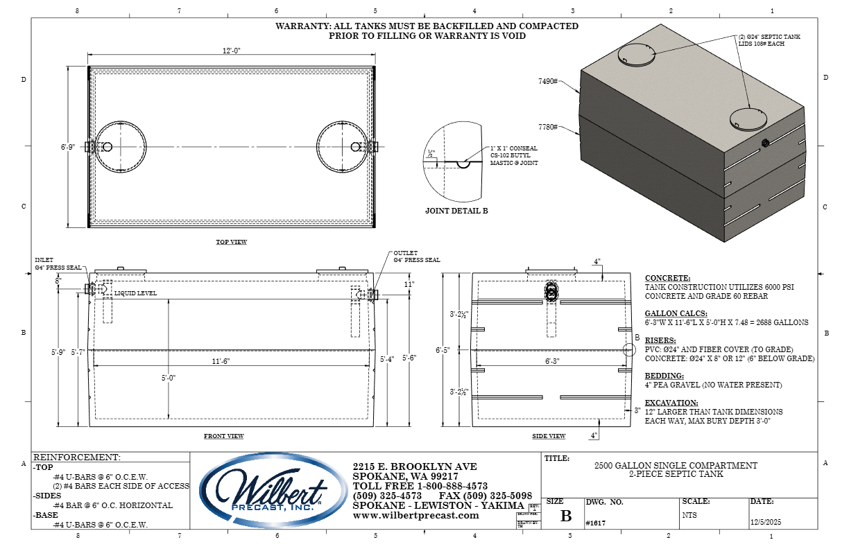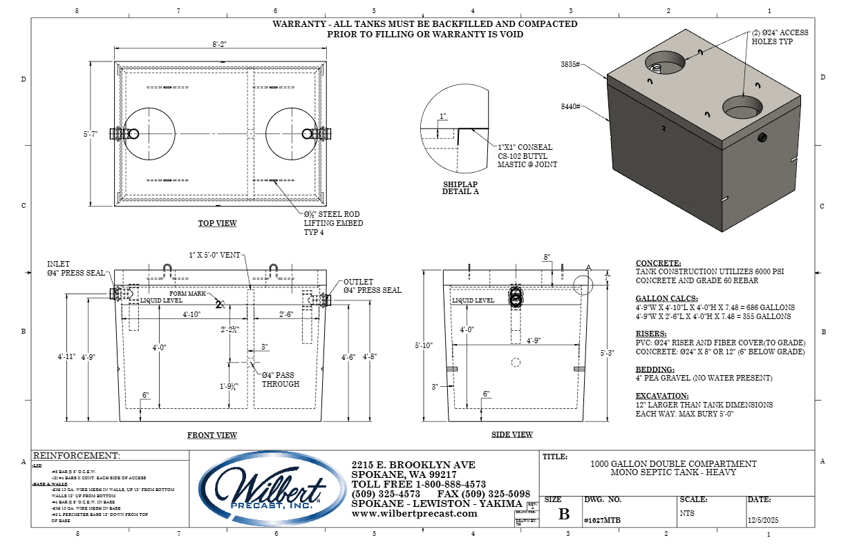 Our septic tanks are some of the best manufactured in the industry. Our customers have said the durability and function of our tanks is one of the best in the Northwest. We have a very experienced staff that can answer your questions in choosing the right size for your needs. We can also provide most of the products you will need to complete a reliable septic tank system.