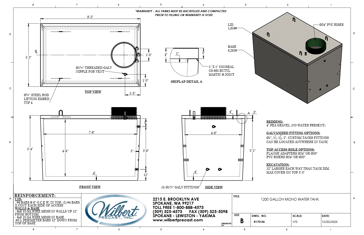 1200 Gallon Mono Water Tank