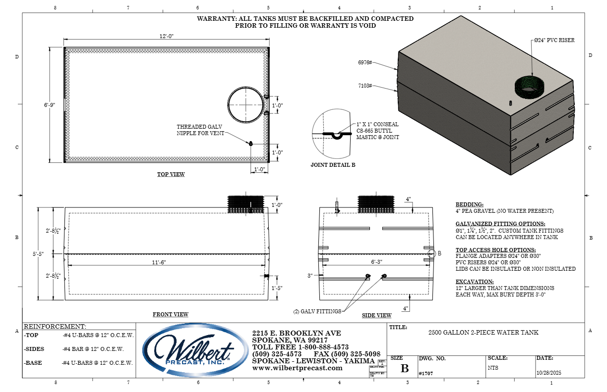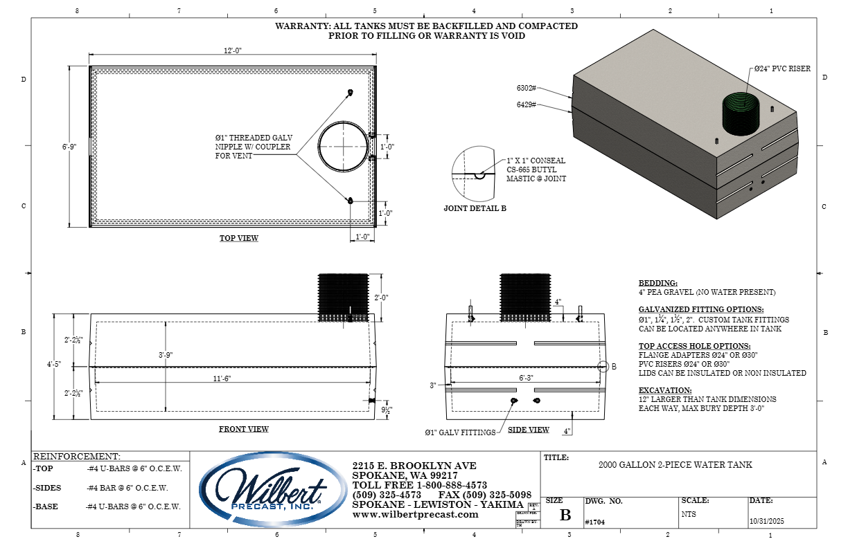 2500 Gallon 2-Piece Water Tank