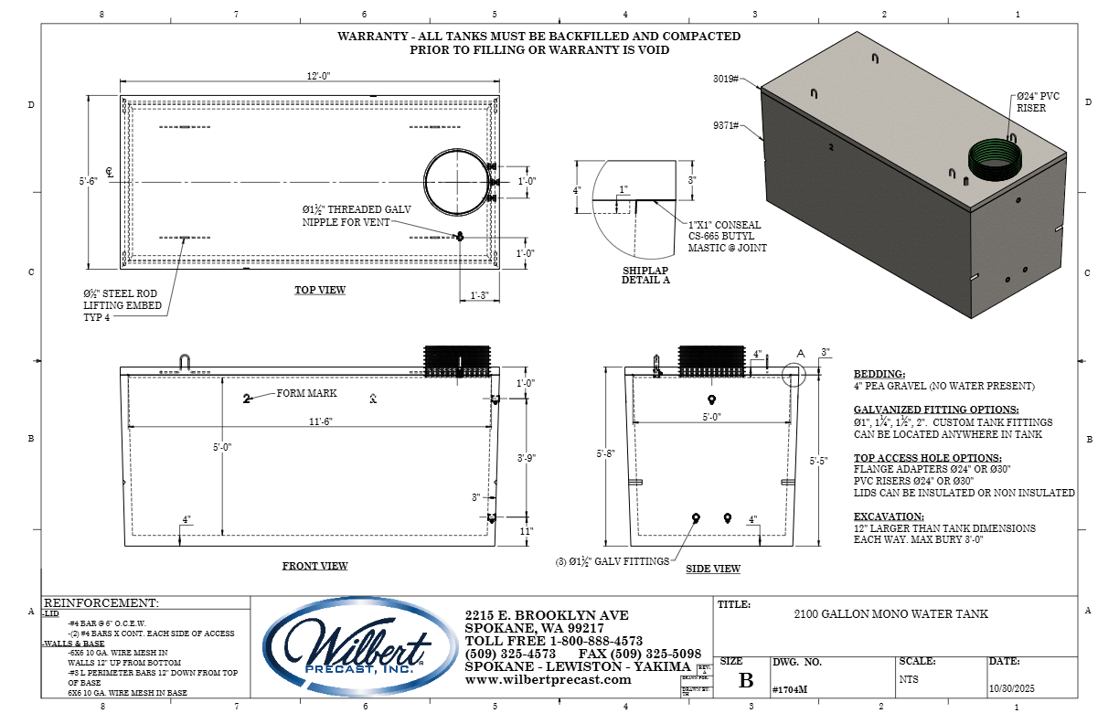 2100 Gallon Mono Water Tank