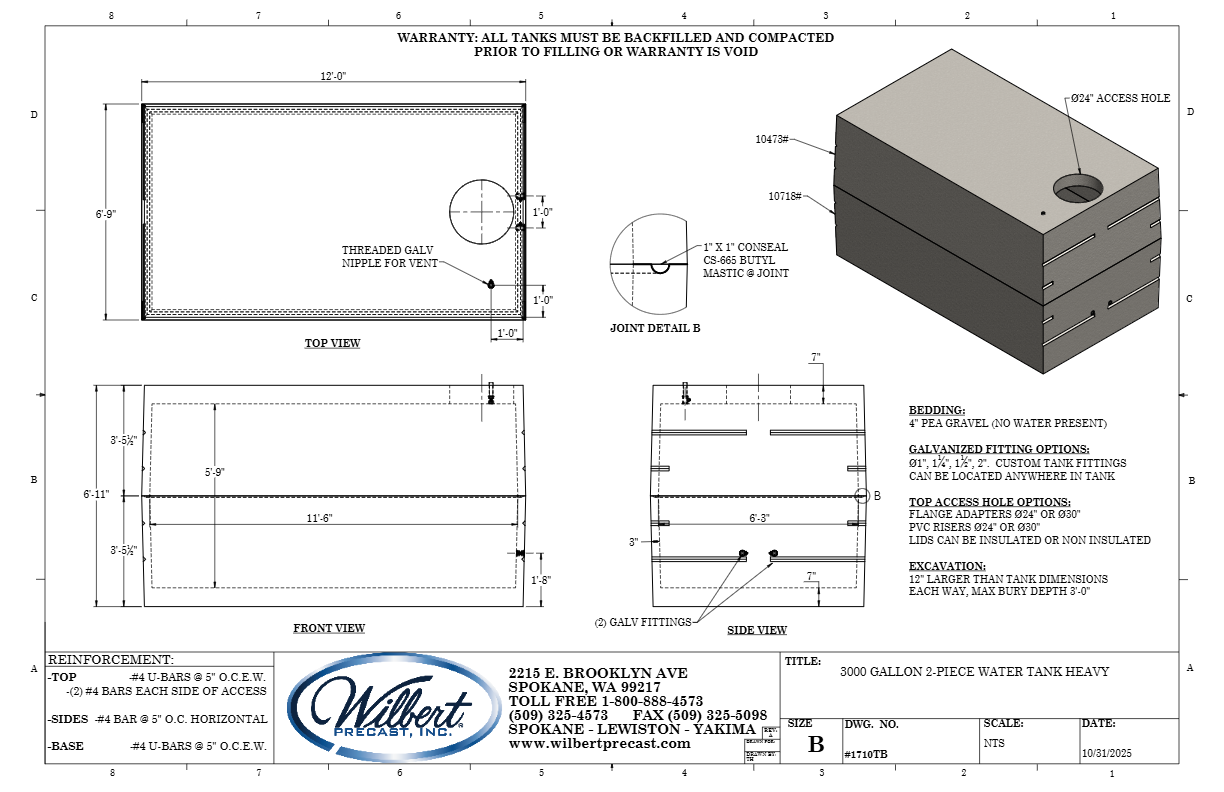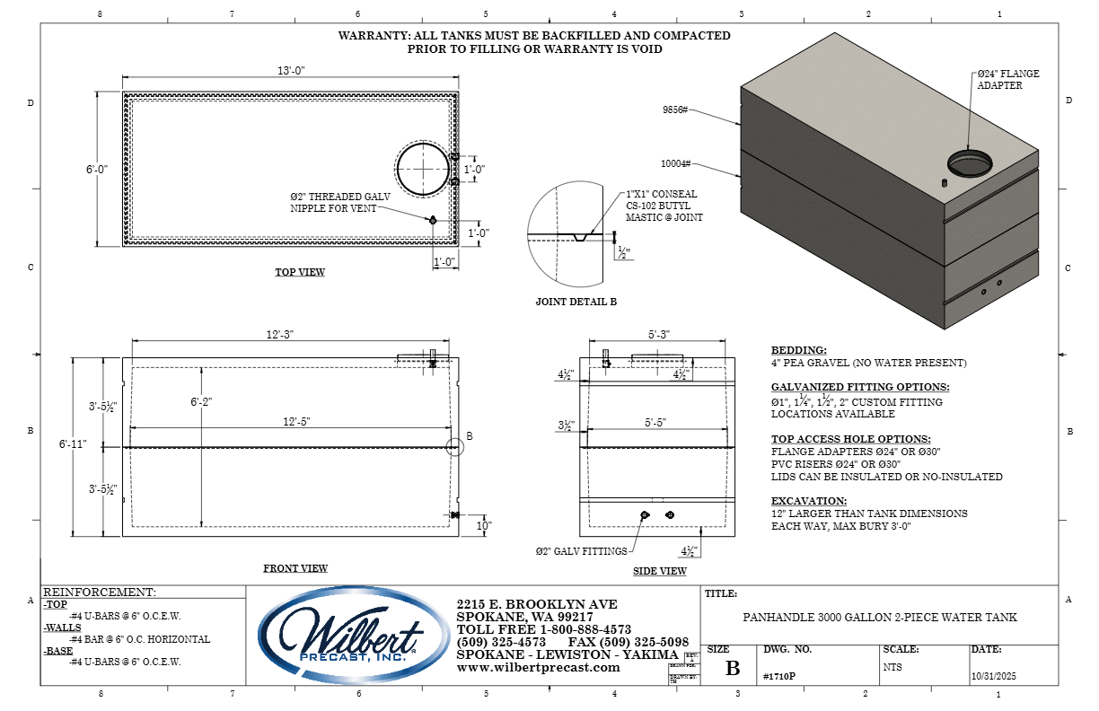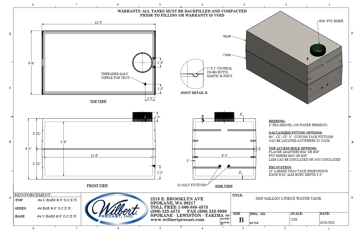 3000 Gallon 2-Piece Water Tank