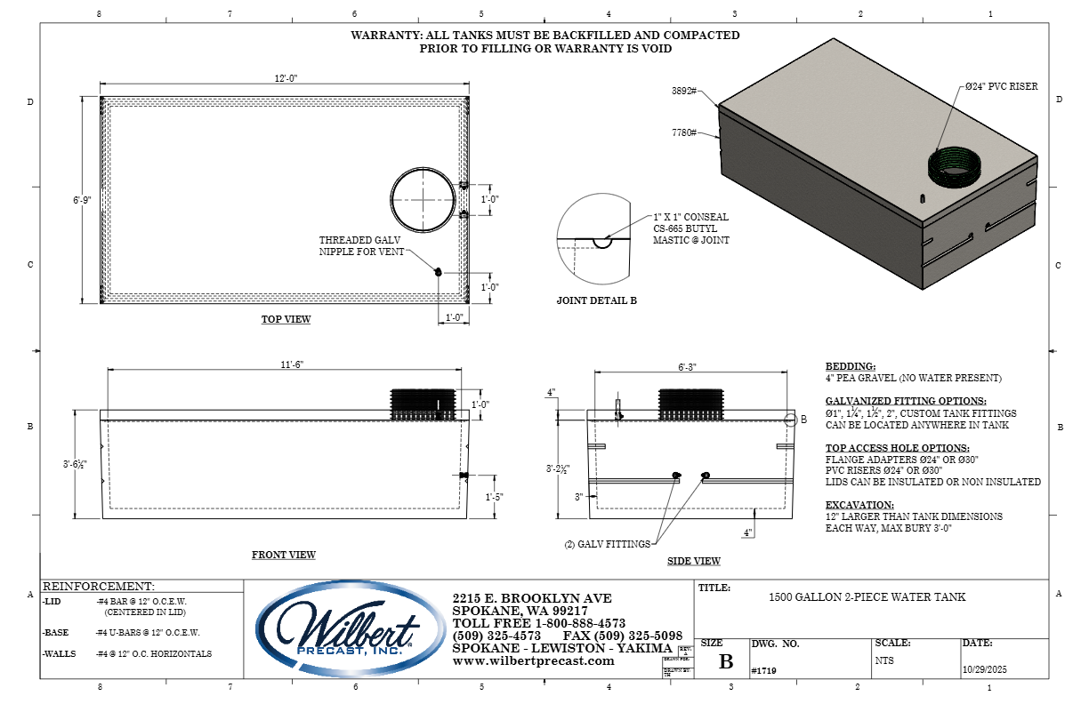 1500 Gallon 2-Piece Water Tank